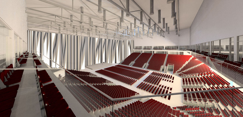 One of the main challenges was to develop and fix a clear brief with various specialists and a client new to developments of this kind. The design included a 75m span roof with suspended VIP boxes and a variety of rigging requirements, fixed and retractable seating with cantilevers, and highly loaded restricted depth floors.
